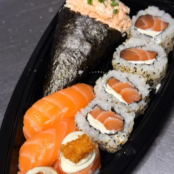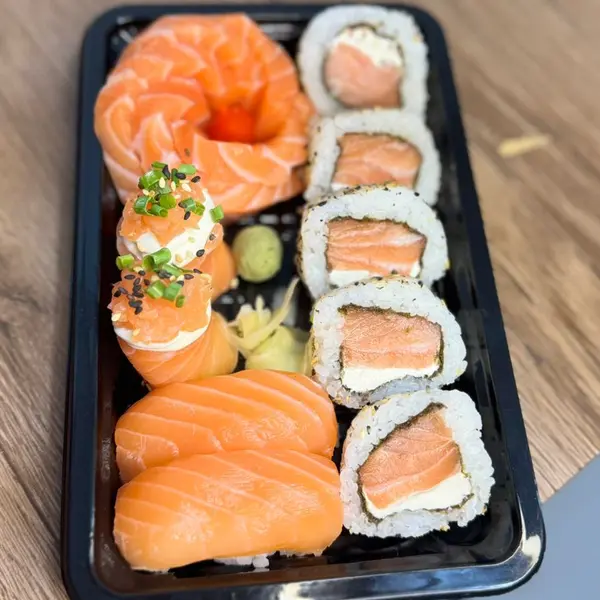 1x Temaki Slim Salmão Cru, 2x Joy, 2x Niguiri Salmão, 4x Uramaki Salmão.